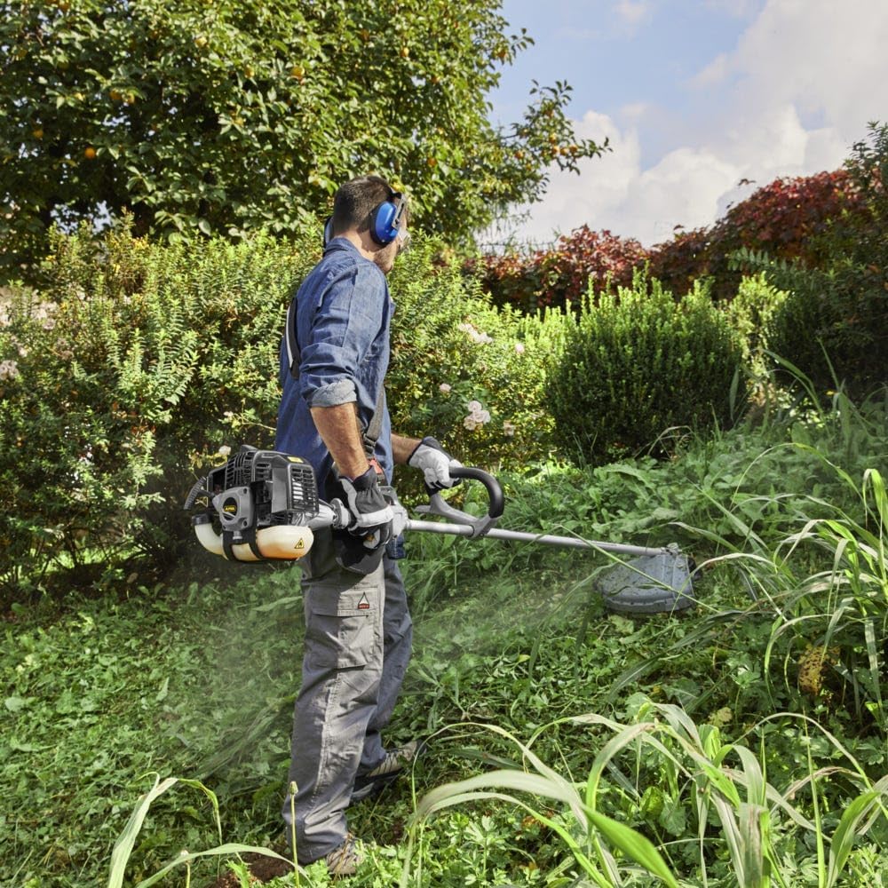 Grazie a questo leggero e maneggevole decespugliatore a scoppio con larghezza di taglio di 43 cm potrete eliminare agevolmente erba alta, rovi o piccoli arbusti. È alimentato da un motore da 32,6 cc con consumi ridotti e avviamento facilitato. Il decespugliatore è dotato di una testina a doppio filo in nylon, con sistema Tap&Go per allungare il filo in modo automatico, e di una con lama in metallo a 3 denti. La bretella in dotazione rende l'utilizzo molto più comodo per schiena, busto e braccia.