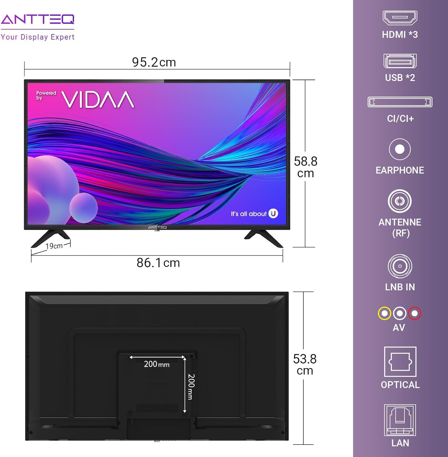 FHD: ANTTEQ TV presenta immagini nitide e chiare analizzando il contenuto, riducendo il fastidioso rumore e riducendo al minimo la distorsione dell'immagine.