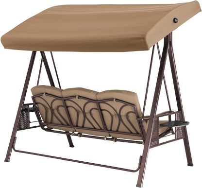 Goditi meravigliose giornate nel giardino o nel terrazzo di casa tua con questo bellissimo dondolo! Il Design moderno e la solida struttura tubolare in metallo verniciato a polvere in un elegantissimo colore marrone, fanno si che questo Dondolo a 3 posti modello Ibiza sia il numero 1 indiscusso delle proposte per l' arredo da terrazzo e Giardino.