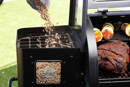 • Capacità 12,7 kg del contenitore per pellet con svuotamento della porta a pellet.