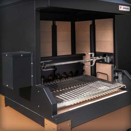 Disponibile la versione con Giroarrosto automatico e, novità 2025, la versione senza basamento per chi desidera una installazione libera, ad esempio su muratura.