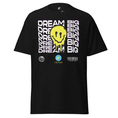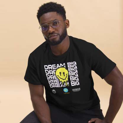 The "Dream Big" message is prominently displayed in a sleek, modern font, encouraging you to pursue your goals and make them a reality. Available in a variety of classic and heather colors, this T-shirt seamlessly integrates into any wardrobe, offering versatility and style.