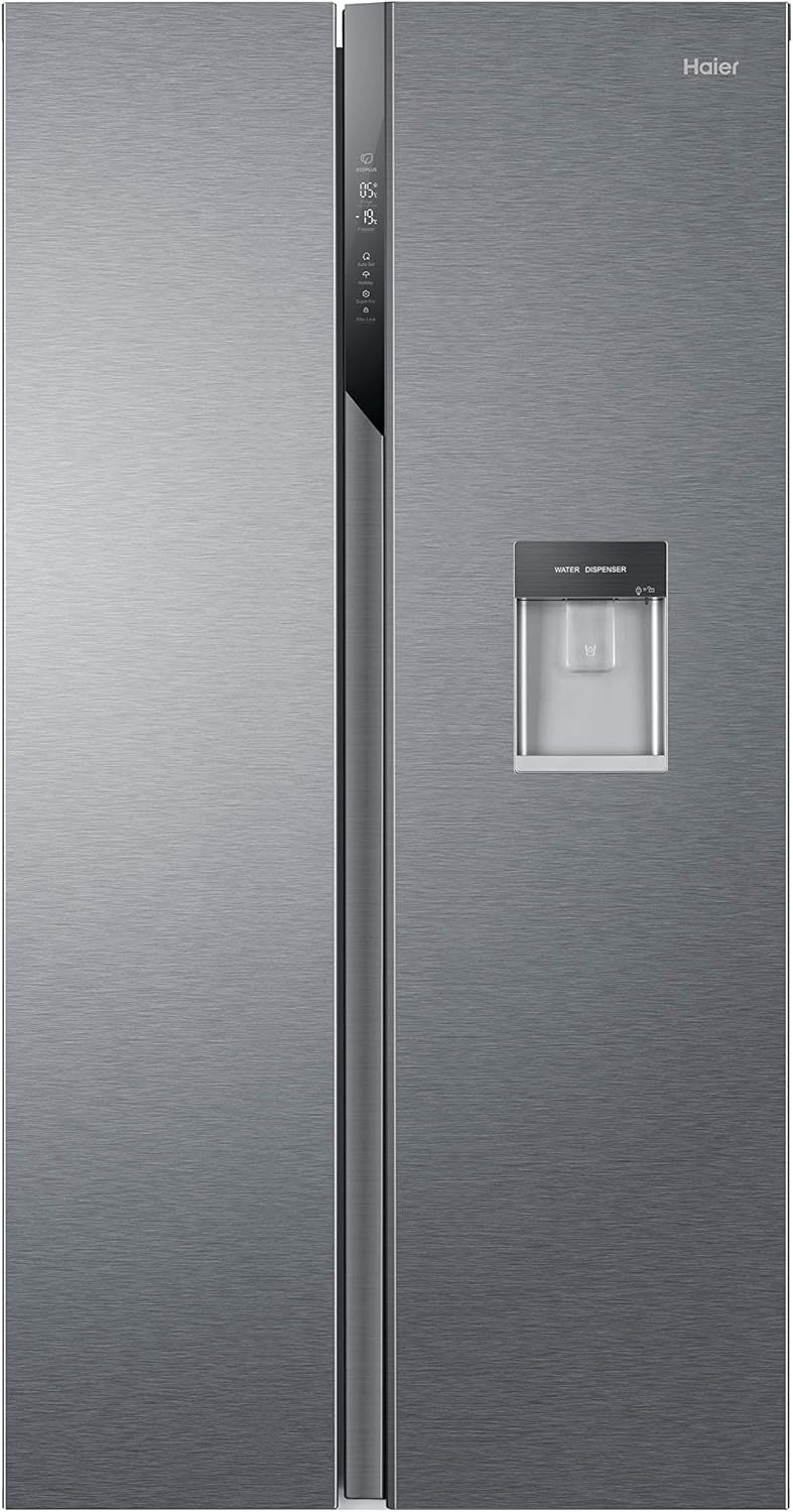 Haier SBS 90 Series 3, Side by Side Refrigerator, 2 Doors, 521 Litres, No Frost, Water Dispenser and Multi Air Flow System, Freestanding, Class E, 90.5 x 65.8 x 177.5 cm, Aluminium - HSR3918EWPG