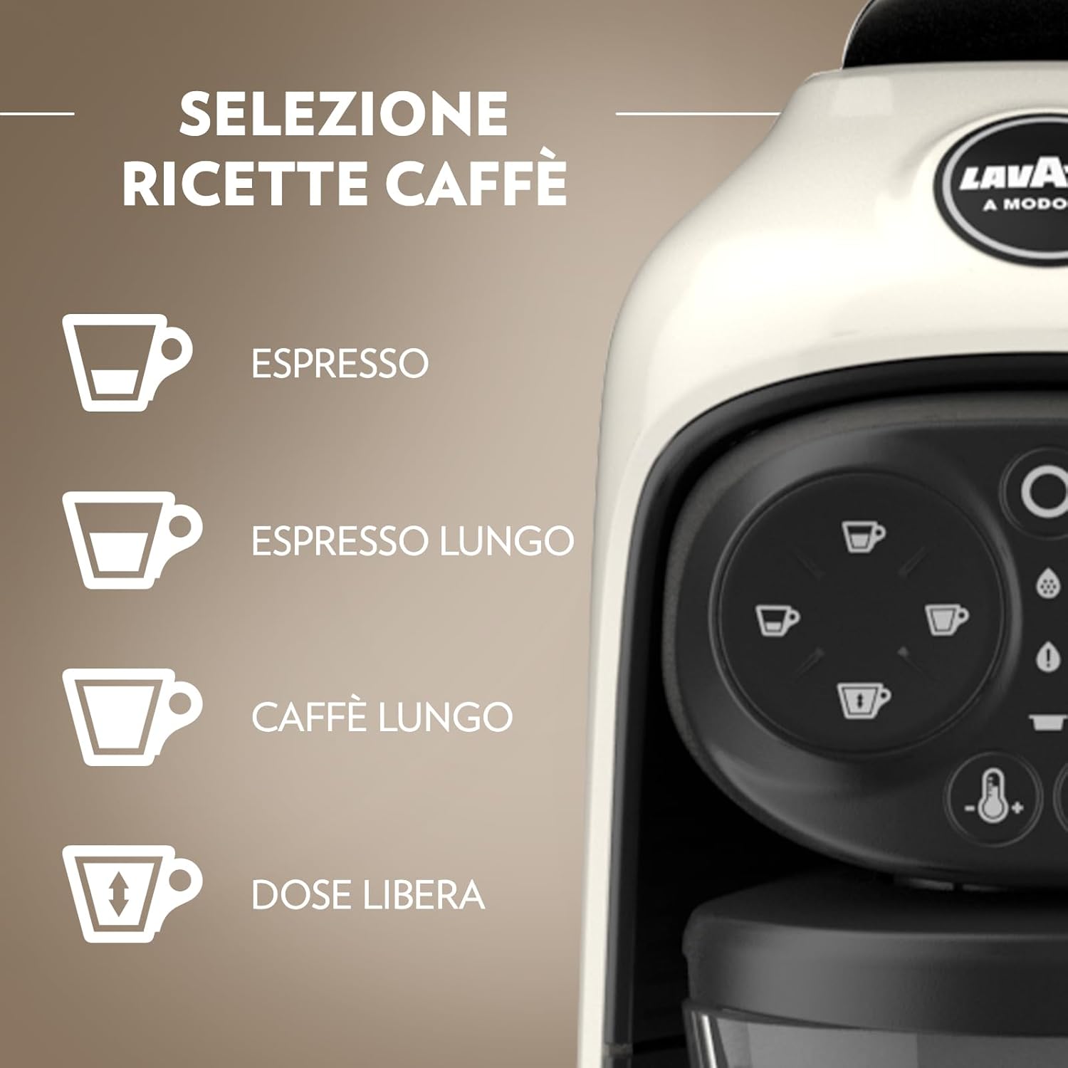 Lavazza, A Modo Mio Macchina per Caffè Deséa White Cream con 88 Capsule Crema e Gusto Assortite, Macchina per Espresso 1500 W, 220-240 V, 50/60 Hz, Capacità Max 10 Capsule di Caffè e 1.1 Litri d'Acqua