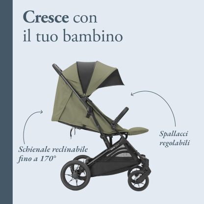 ✅ DESIGN PRATICO E FUNZIONALE: corrimano snodato per facilitare salita e discesa, tessuti sfoderabili e lavabili a mano a 30°C per un passeggino sempre pulito.-