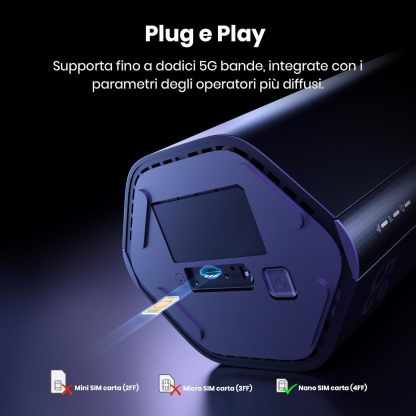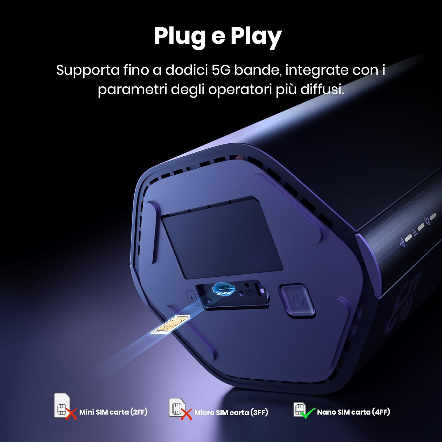Plug and Play: Supporta fino a dodici bande 5G, integrate con i parametri degli operatori più diffusi; Quando e ovunque tu sia, connettività plug and play.
