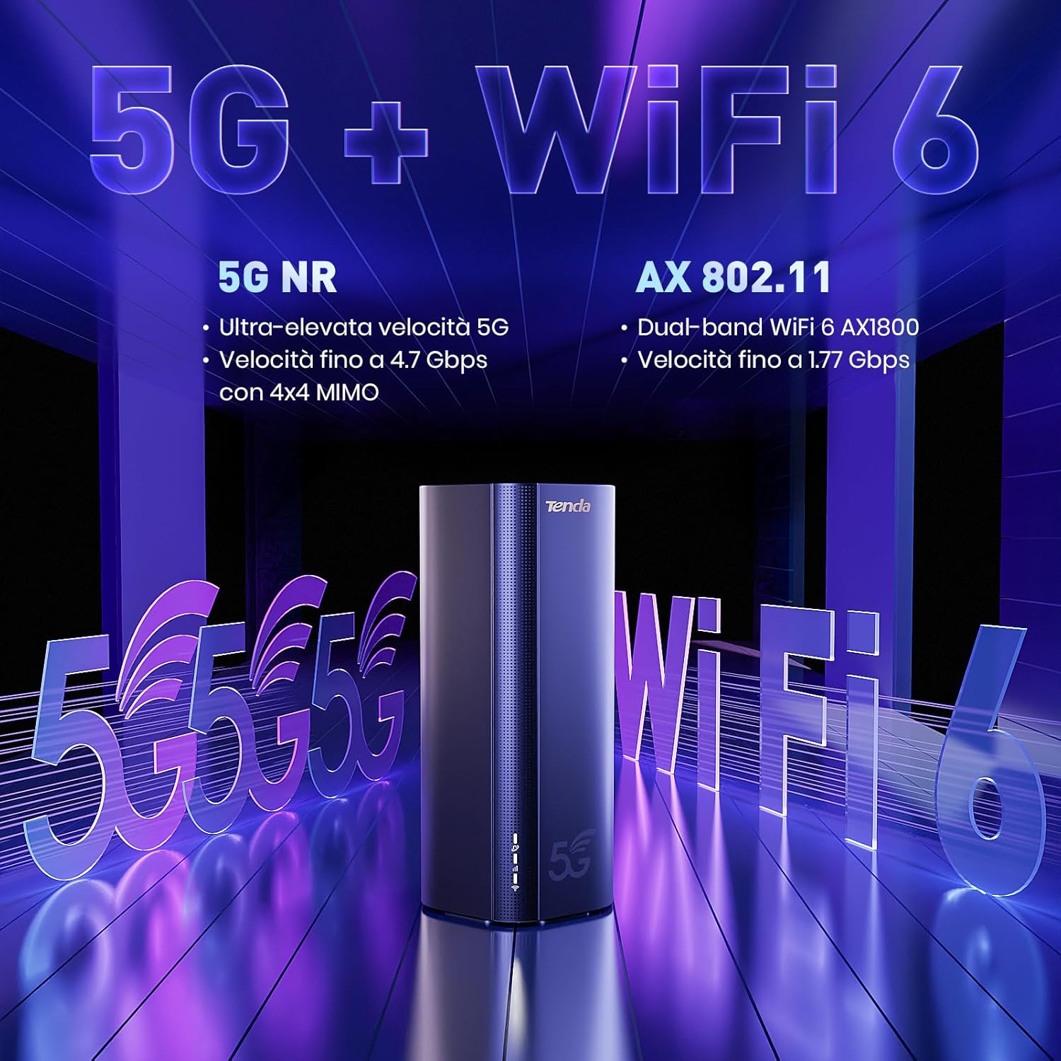 Tenda 5G03 - Router 5G con SIM, Modem 5G SIM WiFi 6 AX1800, Dual Band, Velocità fino a 4,67 Gbps, Easy Mesh, Plug&Play, 2 Porte Gigabit, Connettere fino a 100+ dispositivi, WPA3, OFDMA, MU-MIMO