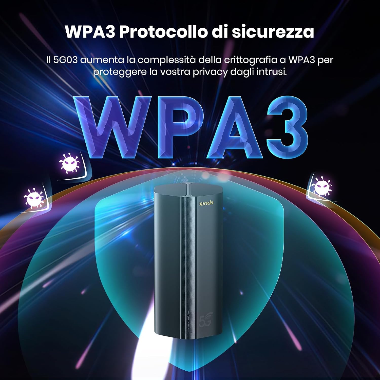 Connessione wireless fino a 100+ dispositivi: Con le tecnologie OFDMA e BSS Coloring, il router 5G03 ti consente di connettere fino a 100+ dispositivi contemporaneamente, per condividere la connettività con la tua famiglia o i tuoi amici.