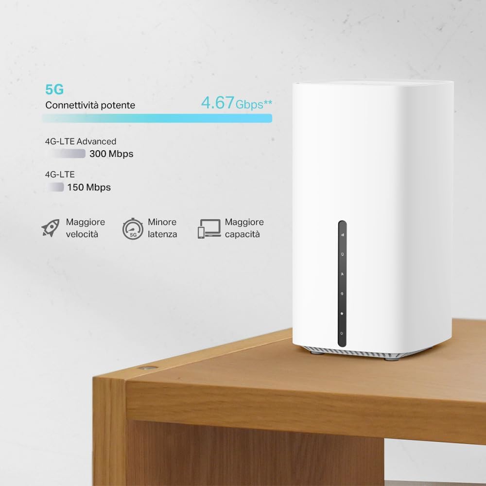 Supporto connettività 5G - Connetti la tua casa sfruttando connettività 5G avanzata con velocità di download fino a 4,6 Gbps e condividi la rete con più dispositivi Wi-Fi