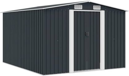 Colour: anthracite. Material: galvanised steel. Dimensions: 257 x 298 x 178 cm (L x W x H). Sliding door: 80 x 154 cm (W x H). Base area: 246 x 285 cm (W x D) Ventilation openings (each): 23 x 10 cm. With 4 air vents Avviso di sicurezza
